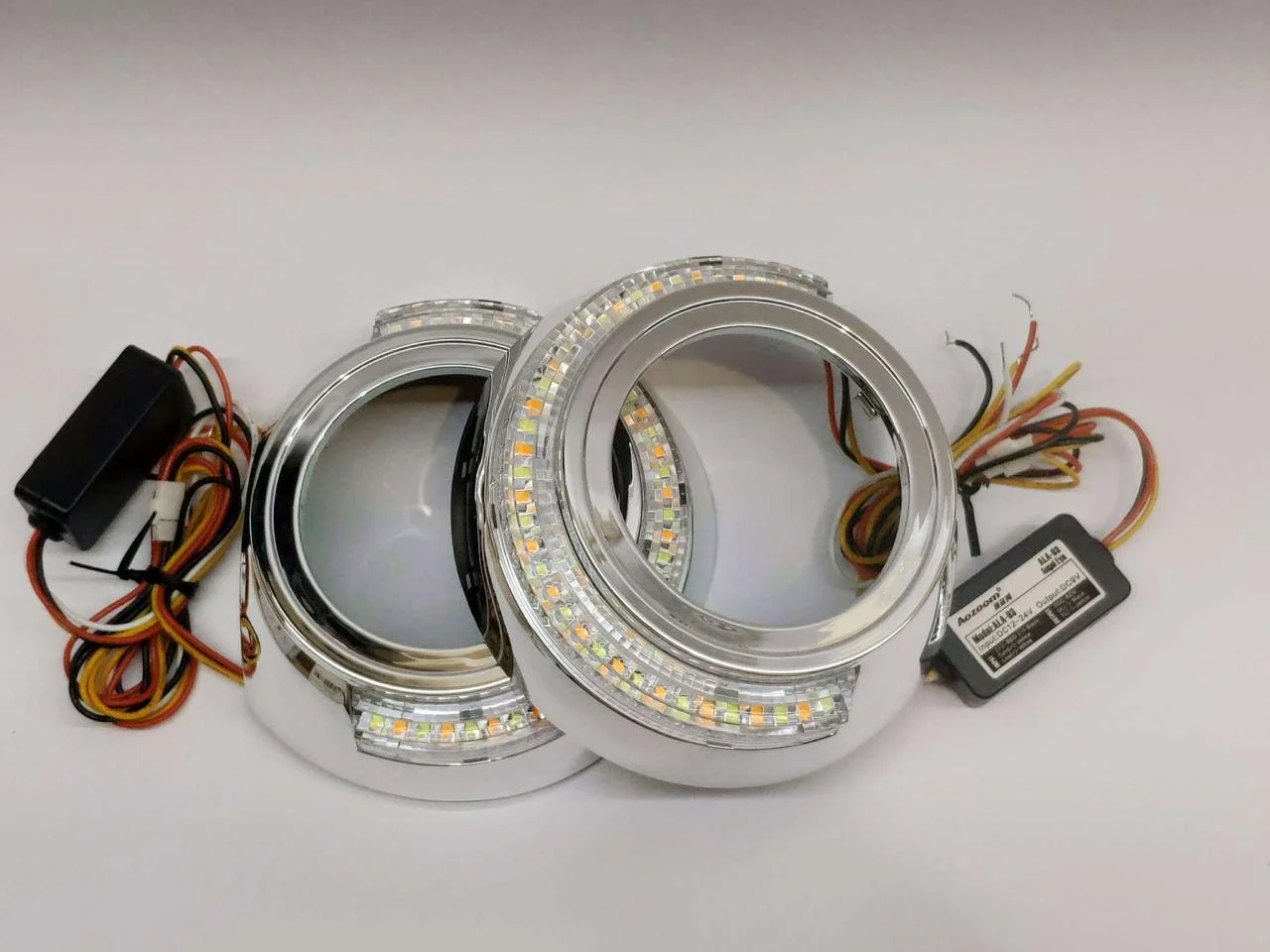 CUBIERTAS CON OJO DE ANGEL DOBLE FUNCION LUZ DE DIA Y DIRECCIONAL EN MEDIDA DE 3″ UNIVERSAL PARA LA MAYORIA DE LUPAS RETROFIT.